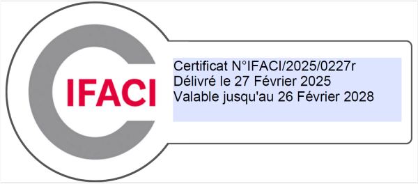 Cette reconnaissance, matérialisée par le certificat N° IFACI/2025/0227r, délivré le 27 février 2025, est valable jusqu’au 26 février 2028.