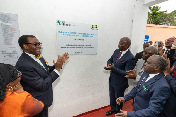 Le chef de l’État gabonais, Brice Oligui Nguema, et le président du Groupe de la Banque africaine de développement (www.AfDB.org), Akinwumi Adesina, ont procédé lundi à l’inauguration d’une station de pompage d’eau potable marquant la fin d’une crise de l’eau qui a duré dix ans dans le quartier densément peuplé de PK5, à Libreville.